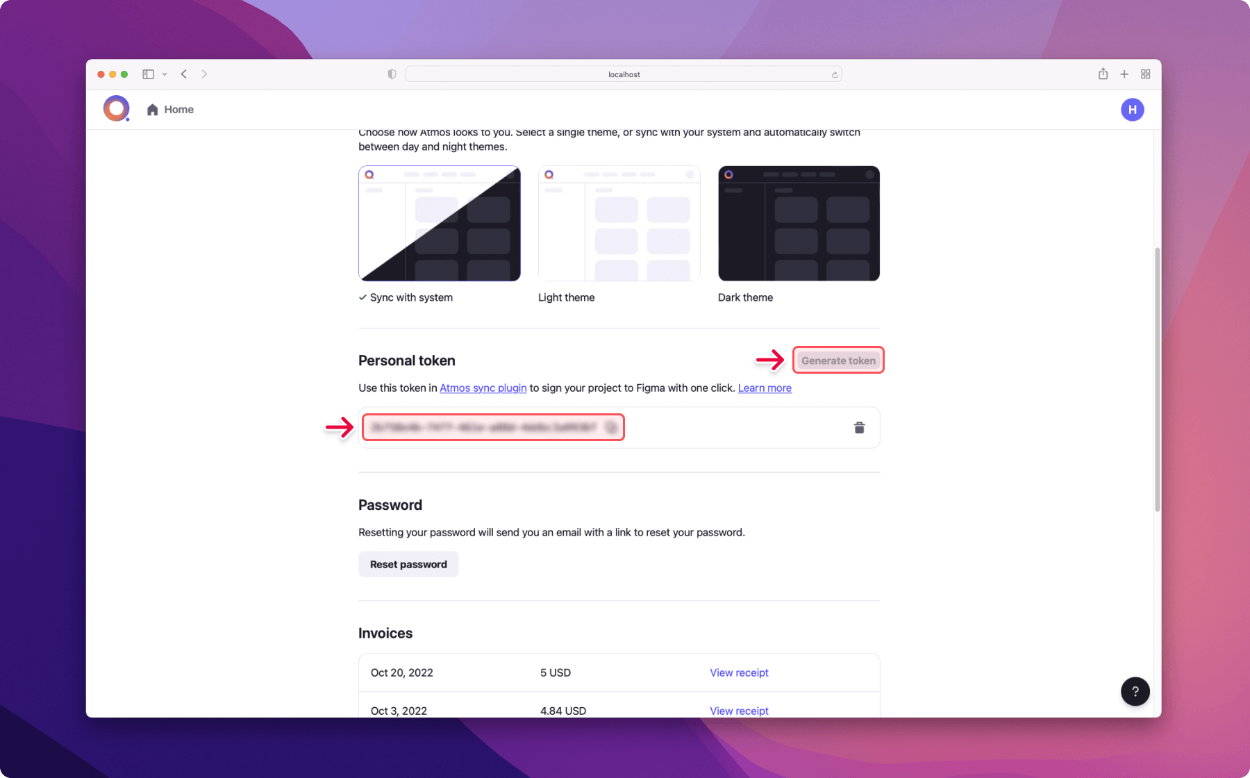 Sync your palette from Atmos to Figma with our Figma plugin.